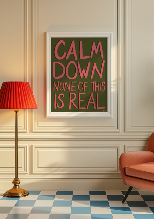 Calm Down, None of this is Real | Green and Pink Existential Print